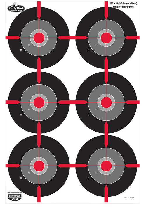 Birchwood Casey Dirty Bird Multiple Bullseye Pistol Target 12" x 18" - 35705