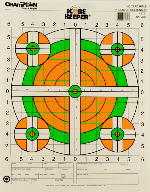 Champion Score Keeper Bullseye Paper Target, Fluorescent Orange/Green - 45761