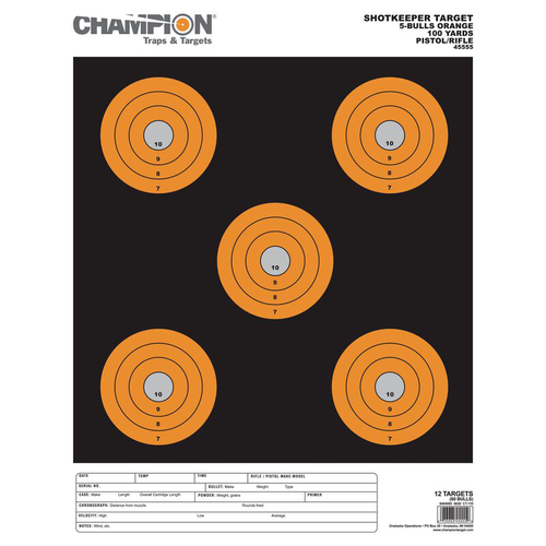 Champion Shotkeeper 5" Bullseye Paper Targets, Black/Orange - 45555