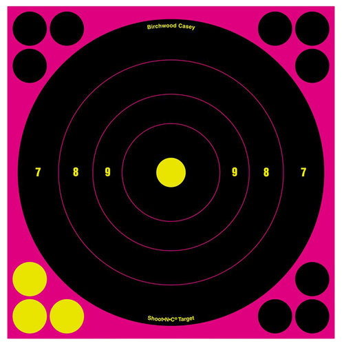 Birchwood Casey Shoot-N-C Reactive Target Self-Adhesive Paper Black/Pink 8" Bullseye 6 Pack - 34808