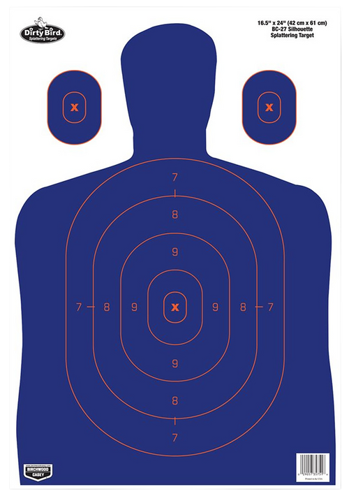 Birchwood Casey Dirty Bird Bad Guy IPSC Silhouette Pistol Target, Black/Blue/White - 35721
