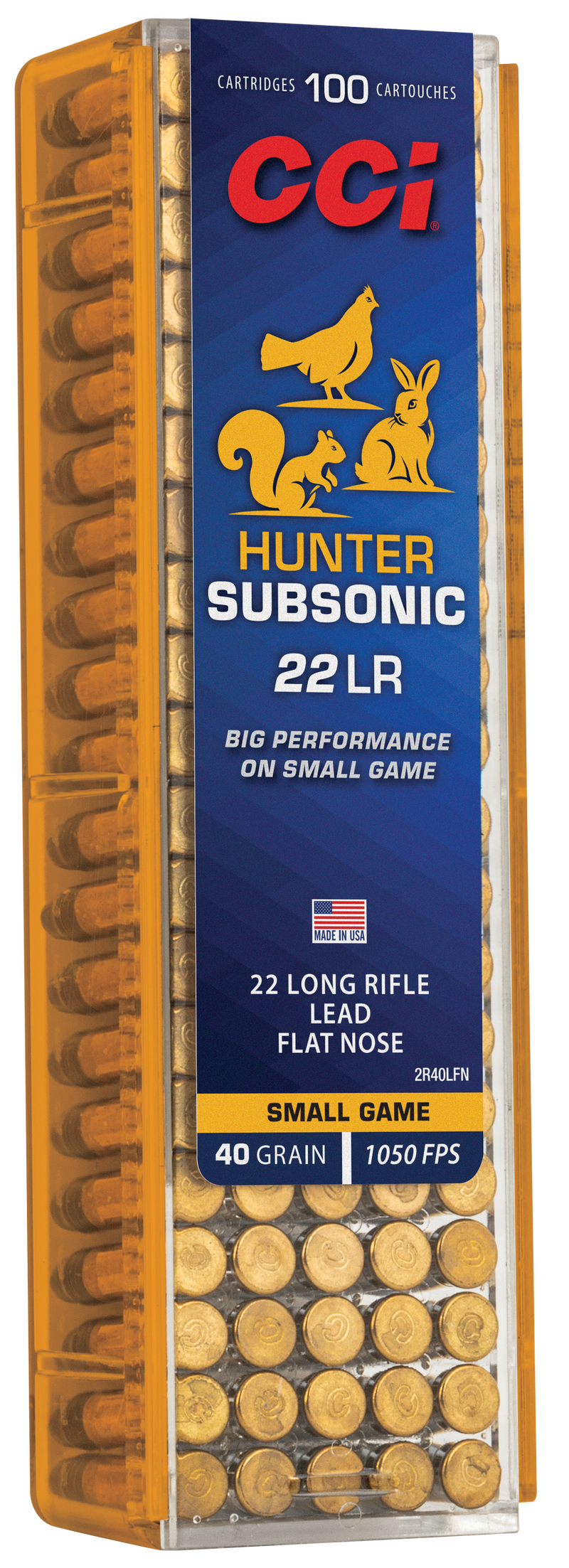 CCI Subsonic 22 LR 40gr Lead Flat Nose 100 Round Box - 2R40LFN