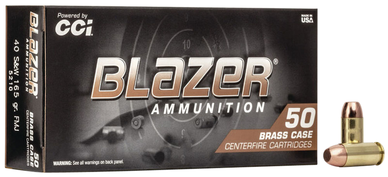 CCI Blazer Brass .40 S&W 165gr FMJ Handgun Ammunition 50rd Box - 5210
