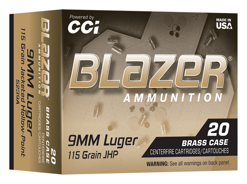 CCI Blazer Brass 9mm Luger 115gr Jacketed Hollow Point Handgun Ammunition, 20rd Box - 5239A