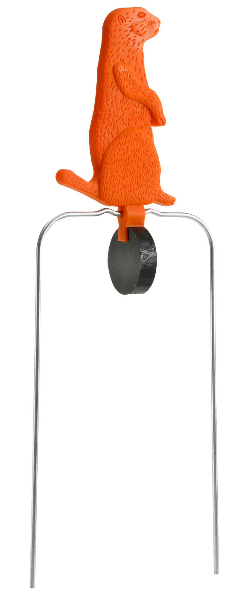 This auto-resetting spinner target features a prairie dog shape and is constructed from DuraSeal, a non-metal self-sealing material that absorbs hundreds of rounds from rifles and handguns while maintaining its shape. Weighing 80% less than metal targets, it allows bullets to pass through with minimal damage, extending target life. Includes a stand for convenient ground setup.