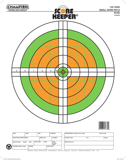 Champion Scorekeeper Targets Fluorescent Orange & Green Bull 100 yd. Rifle Sight-In 100/Pack - 45731