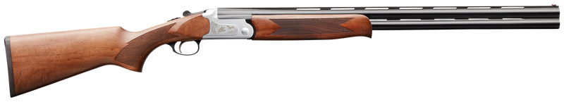 The Charles Daly 202 is a 20 gauge over/under break-action shotgun with a 3" chamber, 26" blued barrel with vent rib, and 2-round capacity. It features a checkered walnut stock, grooved silver steel receiver with engraved quail scene, fixed fiber optic front sight, and includes five interchangeable Beretta/Benelli Mobil chokes (SK, IC, M, IM, F). This full-size shotgun weighs 7.5 lbs and measures 43" overall, making it suitable for upland hunting and sport shooting.