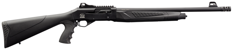 The Charles Daly 601 Tactical is a 12 gauge semi-automatic shotgun with a 3" chamber, 18.5" barrel, and 4+1 capacity, designed for tactical applications. It features a fiber optic front sight and ghost ring rear sight mounted on a Picatinny rail, along with a fixed synthetic stock with pistol grip and matte black steel barrel. Includes three interchangeable chokes (Breacher, Improved Cylinder, Modified) and weighs 6.8 lbs.