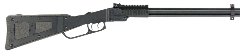 The Chiappa M6 is a break-action over/under combo firearm chambered in 12 Gauge and .22 WMR with an 18.5" barrel and 1+1 capacity. Features adjustable fiber optic sights, a collapsible/folding polypropylene foam and steel stock, and a modified Remington choke. Weighs 5.8 lbs with an overall length of 34.6" and includes a cleaning kit.