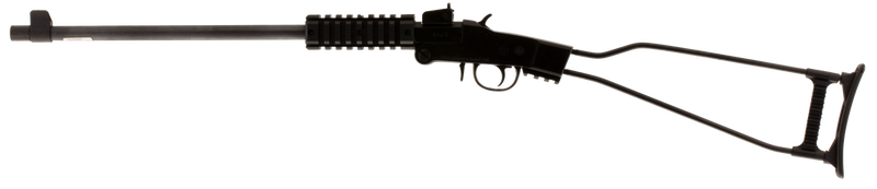 The Chiappa Little Badger is a break-action single-shot rifle chambered in 17 HMR with a 16.5" threaded barrel and 1/2x28 threading. Features a black wire steel folding stock, adjustable rear sight with fiber optic front sight, and Picatinny rail for optic mounting. Weighing 2.9 lbs and folding to 16.5" overall, this ultra-compact utility rifle is ideal for hunting and target shooting.
