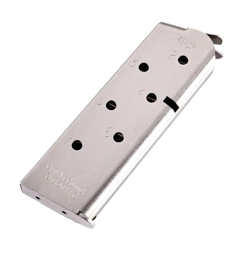 Chip McCormick Custom Match Grade 1911 Officer .45 ACP 7rd Magazine, Stainless Steel - 14120