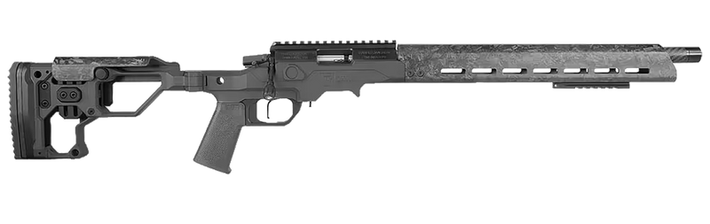 The Christensen Arms MPR Rimfire is a 17 HMR bolt-action rifle with an 18" match-grade threaded barrel and 1-in-9" twist rate. Features include a lightweight billet aluminum chassis, adjustable tactical stock with carbon fiber handguard, TriggerTech trigger, and M-LOK accessory mounts, delivering sub-MOA accuracy in a compact 6.2 lb package.