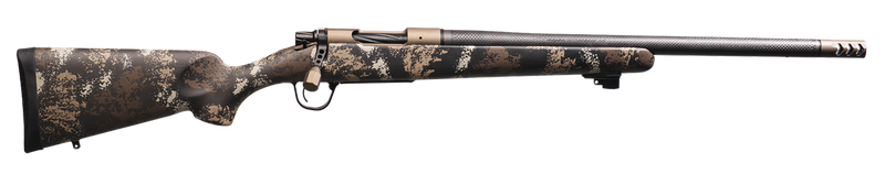 Christensen Arms Ridgeline FFT in 22 Creedmoor with 20" carbon fiber threaded barrel and bolt-action. Features a TriggerTech trigger, burnt bronze cerakote steel receiver, fixed carbon fiber stock, and muzzle brake. Weighs 5.4 lbs and comes drilled and tapped for optics.