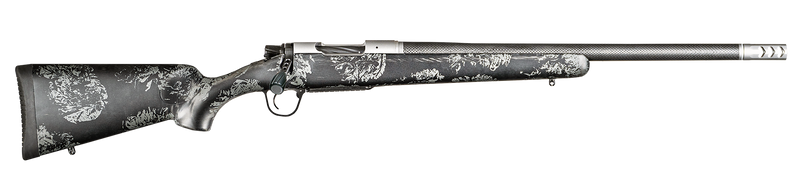 The Christensen Arms Ridgeline FFT is a lightweight bolt-action rifle chambered in 25 Creedmoor with a 22" carbon fiber wrapped stainless steel threaded barrel. Features include a carbon fiber composite stock with gray accents, TriggerTech trigger, 4+1 capacity, and drilled and tapped receiver for optics mounting. Weighing approximately 5.3-5.5 lbs with a Sub-MOA accuracy guarantee, this rifle is built for precision and portability.