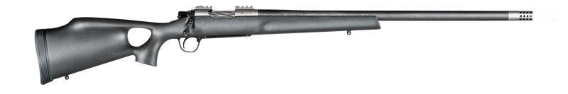 The Christensen Arms Summit Ti is a lightweight bolt-action rifle chambered in 6.5 PRC with a 24" carbon fiber-wrapped steel threaded barrel and titanium action. It features an adjustable match trigger, integrated picatinny rail, radial muzzle brake, and natural carbon fiber thumbhole stock, weighing just 5.5 lbs. This precision rifle includes a 1/2-MOA accuracy guarantee and comes with a 3+1 round capacity.