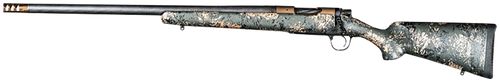 The Christensen Arms Ridgeline FFT is a bolt-action rifle chambered in 300 WSM with a 20" carbon fiber-wrapped stainless steel barrel featuring a threaded muzzle and removable side-baffle brake. Built with Flat Forged Technology (FFT) carbon fiber construction, it weighs just 5.3 lbs and features a synthetic stock with green, black, and tan accents on an aluminum receiver. Drilled and tapped for optics, this rifle carries Christensen Arms' Sub-MOA accuracy guarantee.