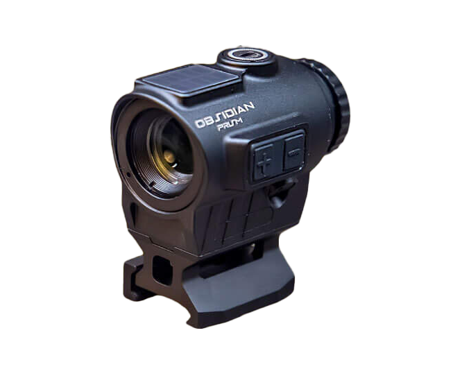 The Century Arms Obsidian Prism is a 1x fixed magnification red dot sight with a 19.6mm objective lens and a 3/70 MOA red dot reticle. It features an illuminated reticle powered by CR2032 battery, shake awake/auto on-off functionality, and a Picatinny rail mount for universal compatibility.