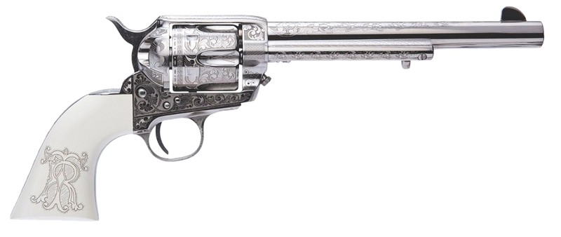 Cimarron Frontier .45 Colt 7.5" 6rd Revolver, Nickel Engraved with White Grip - PP415LNTRII