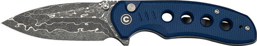 The CIVIVI Triptych is a folding knife featuring a 2.97" damascus steel blade with a blue canvas micarta handle. This mid-size folder is designed for everyday carry and general cutting tasks.