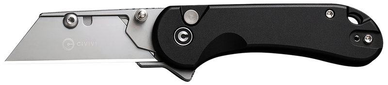 The CIVIVI Elementum Utility is a compact folding knife featuring a 2.26" 6Cr13 stainless steel utility blade with a thumb stud opening mechanism and black aluminum handle. This all-purpose utility knife includes 3 replacement blades and a carrying pouch, making it suitable for general cutting tasks and everyday carry.