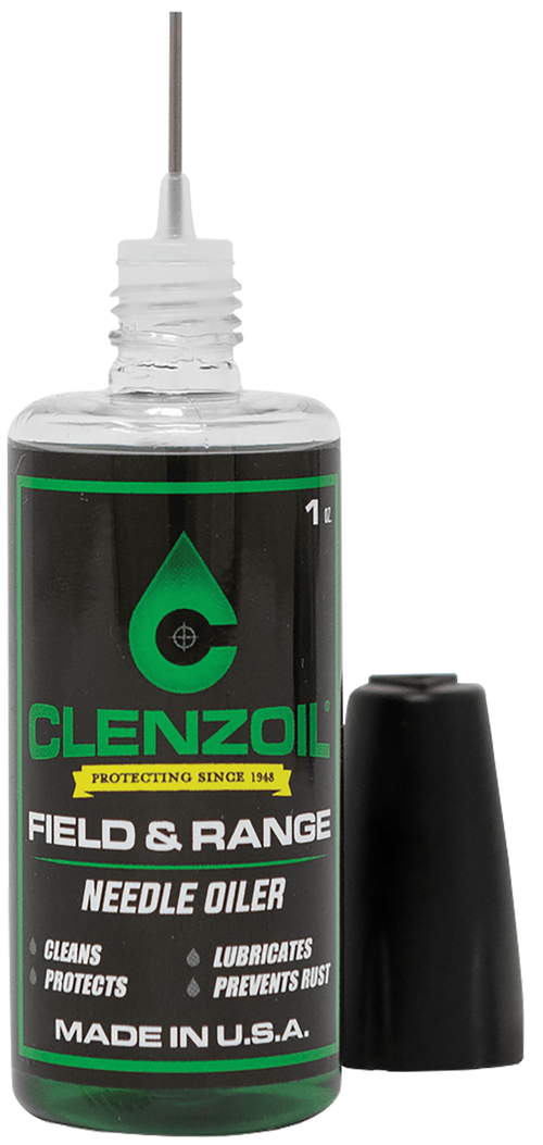 This is a 24-unit counter-top display containing Clenzoil Field & Range gun lubricant, designed for retail environments. The display is made of corrugated cardboard and measures 8.1" L x 8.0" W x 6.1" H. This product contains hazardous materials and is not suitable for air transport.