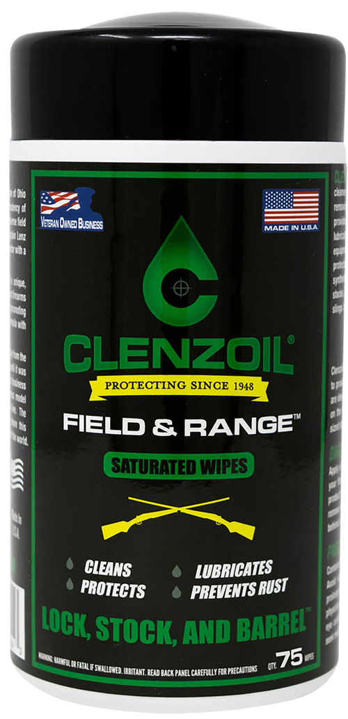Pre-saturated cotton patches designed for cleaning, lubricating, and protecting firearms, particularly effective for muzzleloaders, rifles, and shotguns. This kit contains 75 patches measuring 2.7" x 2.4" and provides a one-step solution for bore cleaning and rust prevention. The patches are treated with Clenzoil's Field & Range formula for comprehensive firearm maintenance.