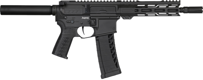 The CMMG Banshee MK4 is a semi-automatic rifle chambered in .22 LR with a 9" barrel and 25+1 round capacity. It features a tube-fed design, CMMG Zeroed grip and safety lever, and comes finished in black. Weighing 4.5 lbs with an overall length of 24.7", this compact platform is ideal for small-caliber shooting and training.