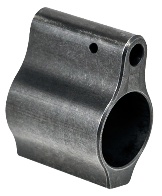 This .625" ID low-profile gas block is designed for AR-15 platforms and constructed from chrome moly steel with black nitride finish. The assembly includes installation screws and is manufactured in the USA with a limited lifetime warranty.