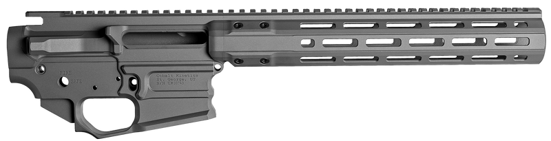 The Cobalt Kinetics CK-Pro Receiver Set is a 11.8" rifle frame and lower assembly in black. This receiver set is designed for rifle builds and features a 9.3" width and 3.3" height profile. Dimensions measure 12.3" in overall length.