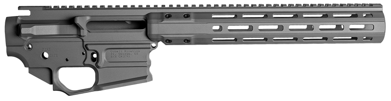 The Cobalt Kinetics CK-Pro Receiver Set is a rifle-pattern lower receiver assembly measuring 9.8" in overall length. This component serves as the serialized foundation for an AR-pattern rifle build and is finished in black. Dimensions are 12.3" L x 9.3" W x 3.3" H.