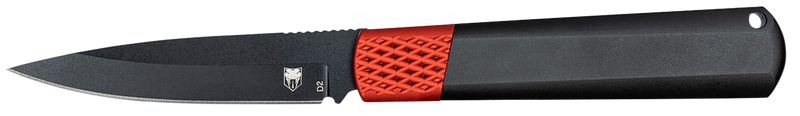 The Cobratec Gideon is a 3" out-the-front (OTF) automatic knife featuring a plain-edge D2 steel blade with a 7.5" overall length and black/red aluminum handle. The knife weighs 2.70 oz and is designed for general cutting tasks and utility use.