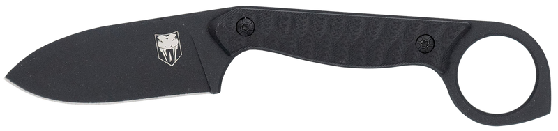 The Wolfteeth is a 2.75" drop point folding knife with a 14C28N stainless steel blade and black textured G10 scales, measuring 6.87" overall length when open. This EDC knife features a plain edge and comes with a Kydex sheath for secure carry. Weighing 3.7 oz, it's designed for everyday carry and general utility use.