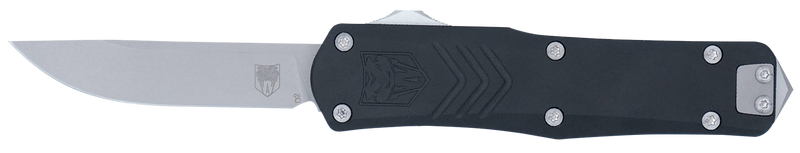 The CobraTec FS-X Gen III Small is a compact OTF (Out-The-Front) folding knife featuring a 2.75" stonewashed D2 steel drop point blade and 3.88" aluminum handle, with a total length of 7". Designed for everyday carry and tactical applications, it combines durability with a reliable plain edge for general cutting tasks. The knife weighs 2.50 oz and is built to provide smooth operation in a pocket-sized format.