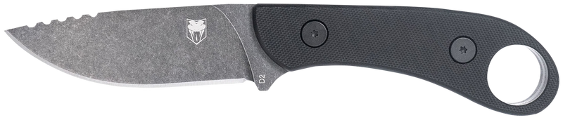 The Cobratec Skinner Gen II features a 3.50" stonewashed D2 steel blade with a plain edge, paired with a black G10 handle featuring a finger ring for enhanced grip and control. The knife has an overall length of 7.75" when open and comes with a Kydex sheath for secure carry and storage. This folding design combines durability and functionality for field use.
