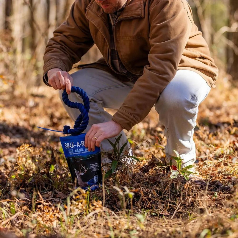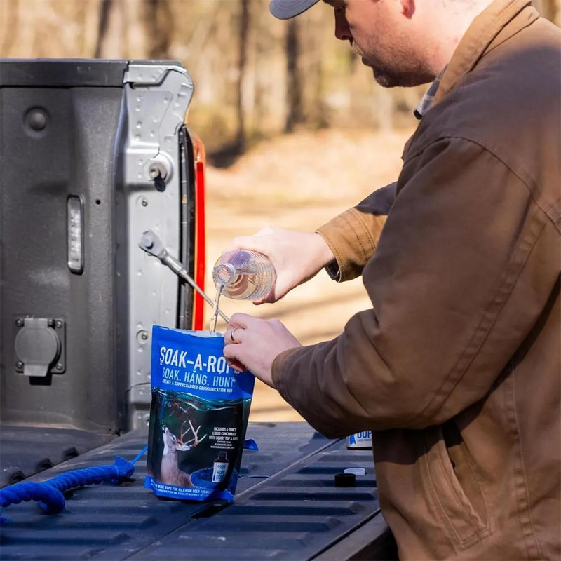 Soak-A-Rope is a ready-to-use scrape-making system designed to attract deer and encourage repeated site visits through natural territorial behavior triggers. The durable cotton-synthetic blend rope is weather-resistant and highly absorbent, holding the included 4-oz. bottle of Rope Dope liquid concentrate for long-lasting scent dispersal.