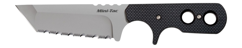 The Cold Steel Mini Tac Tanto is a compact fixed blade knife featuring a tanto-style blade point design. With a 2.3" blade width and 7.7" overall length, it is sized for tactical utility and everyday carry applications. The knife is constructed with premium materials and cold steel craftsmanship.