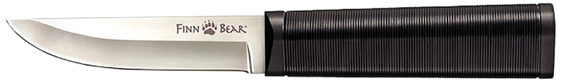The Cold Steel Finn Bear is a 4-inch fixed blade knife with a 4116 stainless steel blade and black polypropylene handle, designed for camping and outdoor use. The knife features a plain edge, straightback blade design, and weighs 2.80 oz with an overall length of 8.50 inches. It comes with a sheath for secure carry and storage.