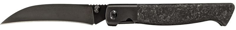 This Cold Steel Spectre features a 3.80" CPM 20V stainless steel blade with a hawksbill talon point design and matte black PVD finish. The knife has a forged carbon fiber handle with titanium bolsters, a liner lock mechanism, and thumb stud opening, weighing 3.10 oz with an overall length of 8.75". Designed for everyday carry with an edge-retaining hollow grind.