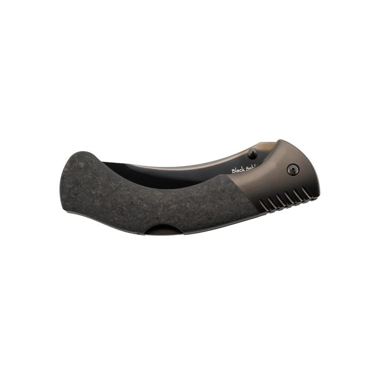 The Black Sable is a modern folding knife featuring a 4.2" XHP steel tanto blade with PVD finish and a lock-back mechanism for secure deployment. The forged carbon fiber handle provides a comfortable grip while keeping the overall weight to 10.5 oz, making it suitable for outdoor adventures and everyday carry.
