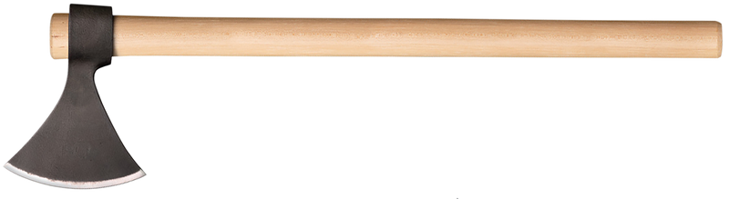 The Cold Steel Norse Hawk is a 22" tomahawk featuring a 4.5" plain edge blade made from 1055 carbon steel with an American hickory handle. This tool weighs 25.3 oz and is designed for outdoor tasks and general use. The classic design combines traditional tomahawk styling with modern materials for durability and reliability.