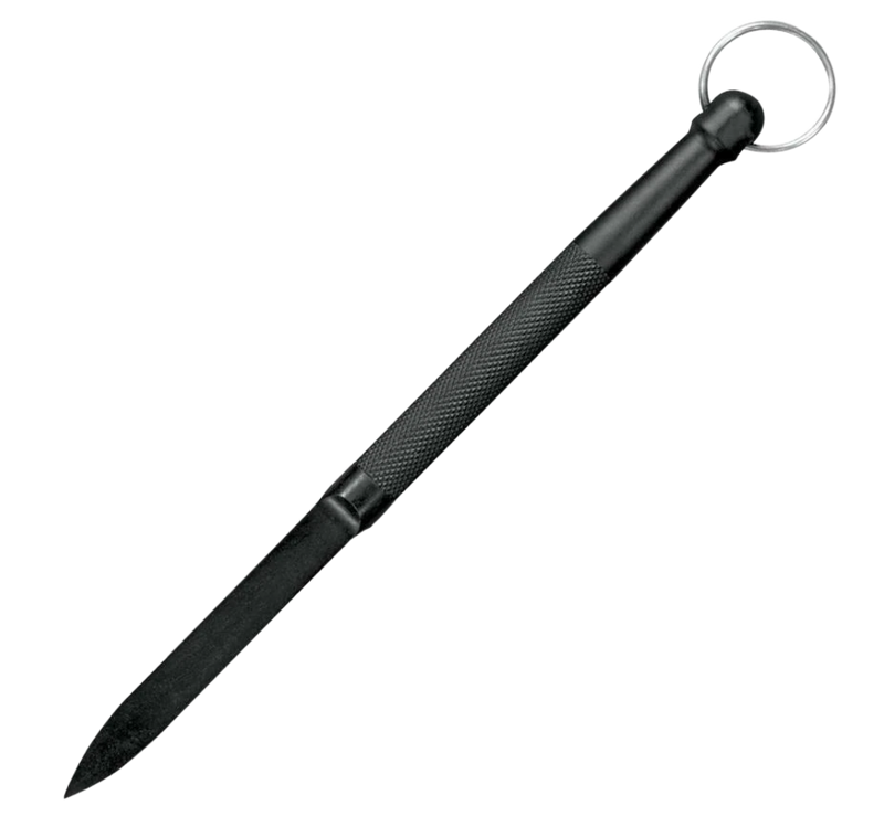 The Cold Steel Delta Dart is a 3.38" fixed blade knife featuring a plain edge and black knurled Zy-Ex handle with lanyard ring. This compact defense tool weighs 1 oz and has an overall length of 8.13", making it suitable for everyday carry or tactical applications.