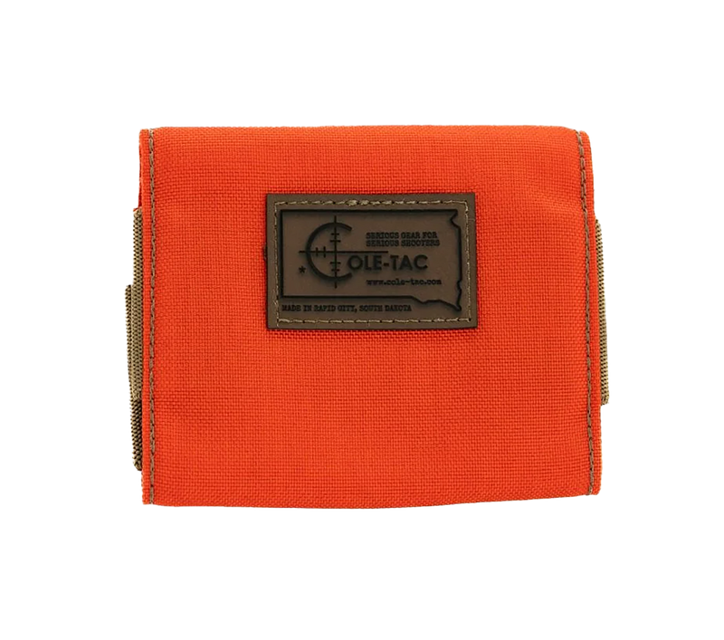 The Cole-TAC Hunter Ammo Wallet is a compact storage solution designed to hold up to 10 rounds of ammunition. Constructed from durable Cordura material, it measures 13.0" x 5.9" x 0.9" and features a burnt orange color for visibility in the field. This accessory is ideal for hunters and shooters who need quick access to extra ammunition during outings.