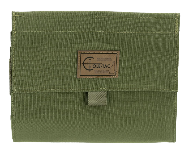 The Cole-TAC Hunter Ammo Wallet is a compact storage solution designed to hold up to 40 rounds of ammunition. Constructed from durable OD Green Cordura material, it measures 19.5" x 10.3" x 1.4" and provides reliable organization for field use.