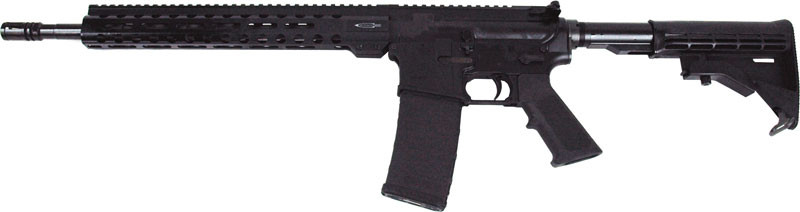 Semi-automatic AR-15 platform carbine chambered in 5.56 NATO with a 16.1" chrome-lined barrel and 1:7 right-hand twist. Features a flat-top upper receiver with M-LOK handguard, 6-position collapsible stock, and bird cage flash hider. Weighs approximately 6.5 lbs with an overall length of 32-36.5 inches.