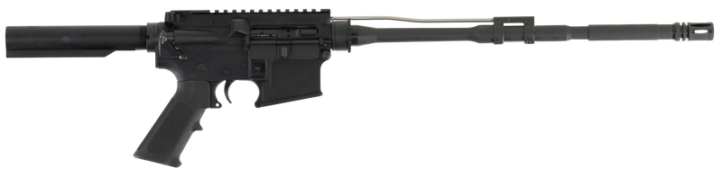 Semi-automatic AR-15 platform carbine chambered in 5.56 NATO with a 16.1" chrome-lined barrel and 1:7 twist rate. Features a flat-top receiver with Picatinny rail, low-profile gas block, and threaded barrel with flash hider; no furniture included for customization. Weighs approximately 5.3-5.4 lbs with an overall length of 32".