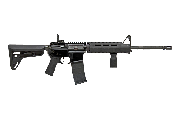 Semi-automatic AR-15 platform rifle chambered in 5.56 NATO/.223 Remington with a 16.1" chrome moly vanadium barrel and 1:7" twist rate. Features Magpul MOE SL collapsible stock, Magpul MOE grip, A2 front sight with Magpul MBUS Gen 2 rear sight, M-LOK vertical grip, and includes one 30-round magazine. Matte black anodized receiver and furniture with picatinny rail for optics mounting.
