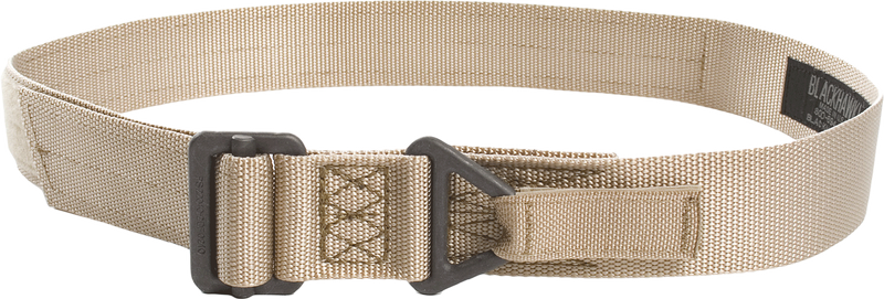 The Blackhawk CQB Riggers Belt is a 1.75" wide nylon belt with 7000 lb tensile strength webbing, designed to securely hold tactical accessories and gear. It features MIL-STD-858 compliance with parachute-grade buckles and hook-and-loop closure for quick adjustment. Available in Medium size (up to 41" waist) in tan nylon.