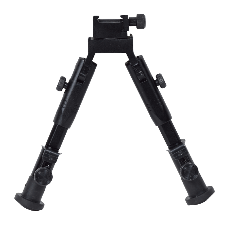 This compact bipod is designed for rifles and provides stable shooting support with adjustable legs. The lightweight construction makes it suitable for both bench rest shooting and field use. Dimensions are 7.0" long, 4.5" wide, and 2.5" high.
