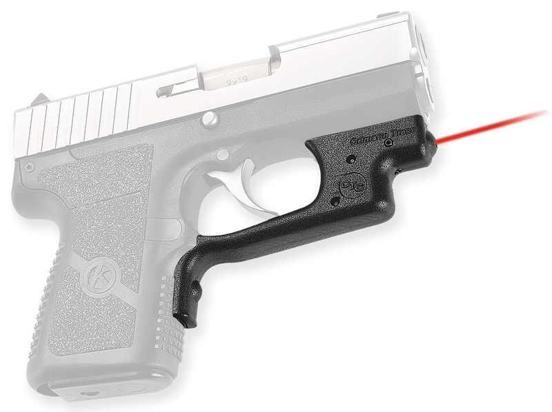 This trigger guard-mounted laser sight fits Kahr Arms CT/PM/C/P/TP/CW series pistols and features a red laser (633nM wavelength) with 5mW power and 50-foot effective range. The black polymer housing measures 5.4" x 3.3" x 2.2" and weighs less than 1 ounce, with windage and elevation adjustments and a 0.50" dot size at 50 feet. It uses a CR1/3N battery and is designed to enhance accuracy for defensive and target shooting applications.