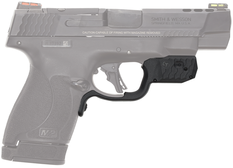 The Crimson Trace Laserguard Plus is a trigger guard-mounted laser sight designed specifically for the S&W M&P Shield Plus. It features a green laser (515-532nM wavelength) with integrated white light functionality and overmold front activation for intuitive operation. The laser produces a 0.50" dot at 50 feet and operates on a CR1/3N battery.